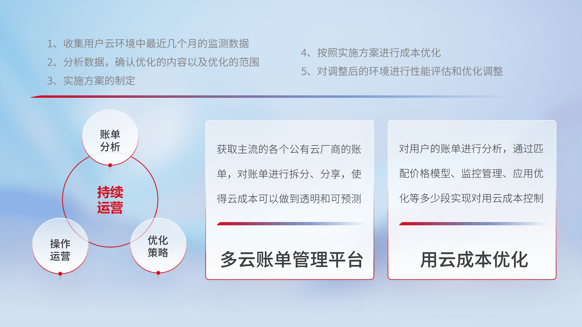 监控业务系统资源开销,,对资源的消耗精确计量,,实现费用的透明化管理,,,不断提升资源使用率,,调整资源购买方式,,降低资源费用成本,,用云成本可预测、、、、用云费用可优化,,,云资源配额有据可依。。